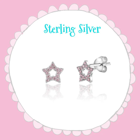 Girl Nation: 925 Sterling Silver Star Earrings with Pink Cubic Zirconia