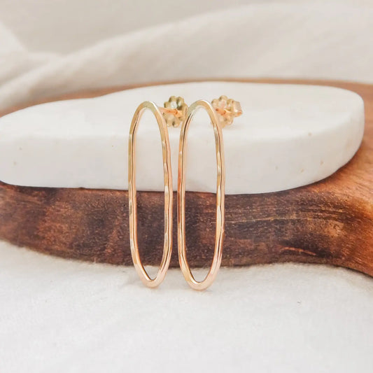 Hammered Oval Earrings - Gold