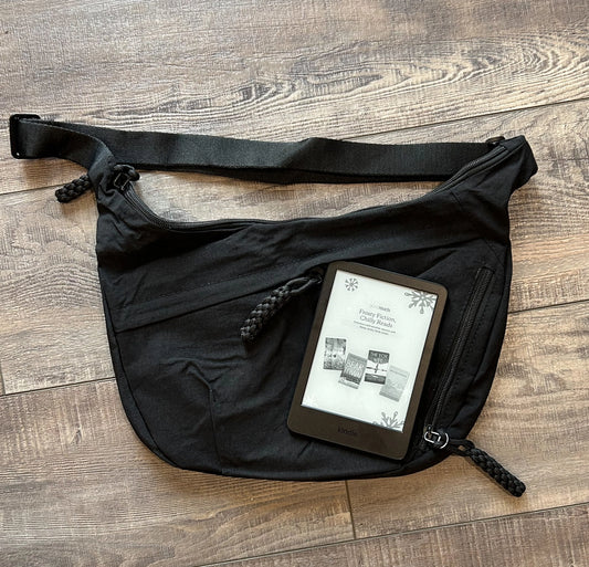 Large Nylon Crescent 3 Zipper Bag {Black}