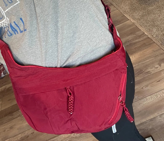 Large Nylon Crescent 3 Zipper Bag {Burgundy}