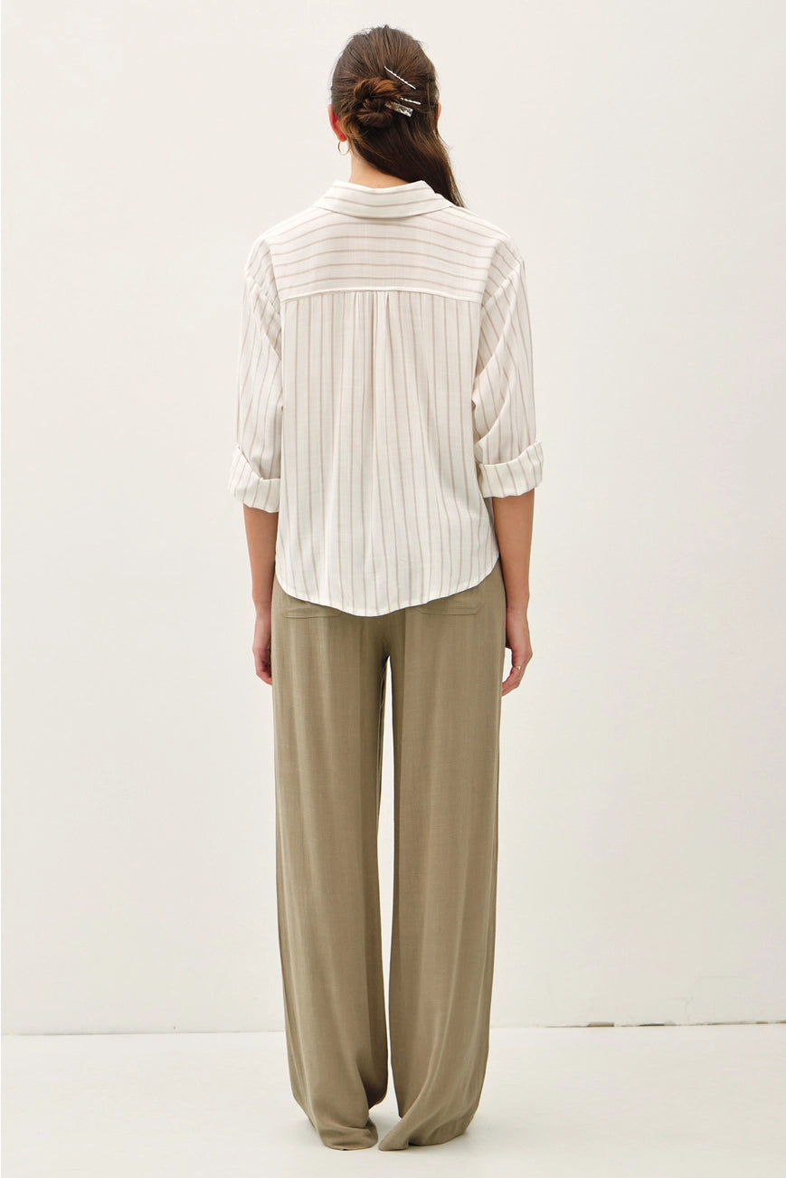 Color: White with Taupe Stripes